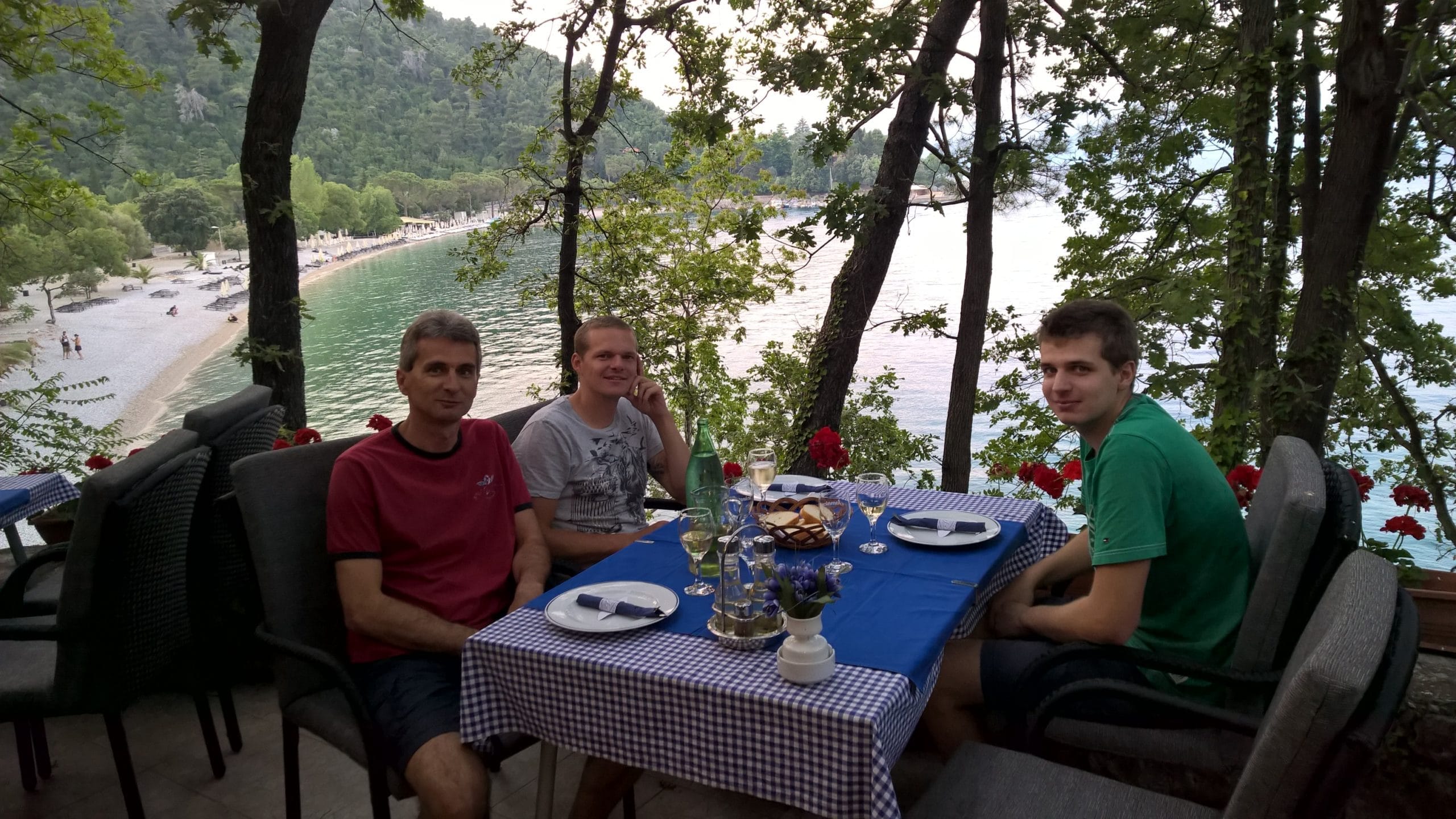 Das Foto ist vom Abendessen in einem Restaurant neben dem Strand beim Campingplatz in Medveja, wo wir in einem Mobilheim übernachtet haben.