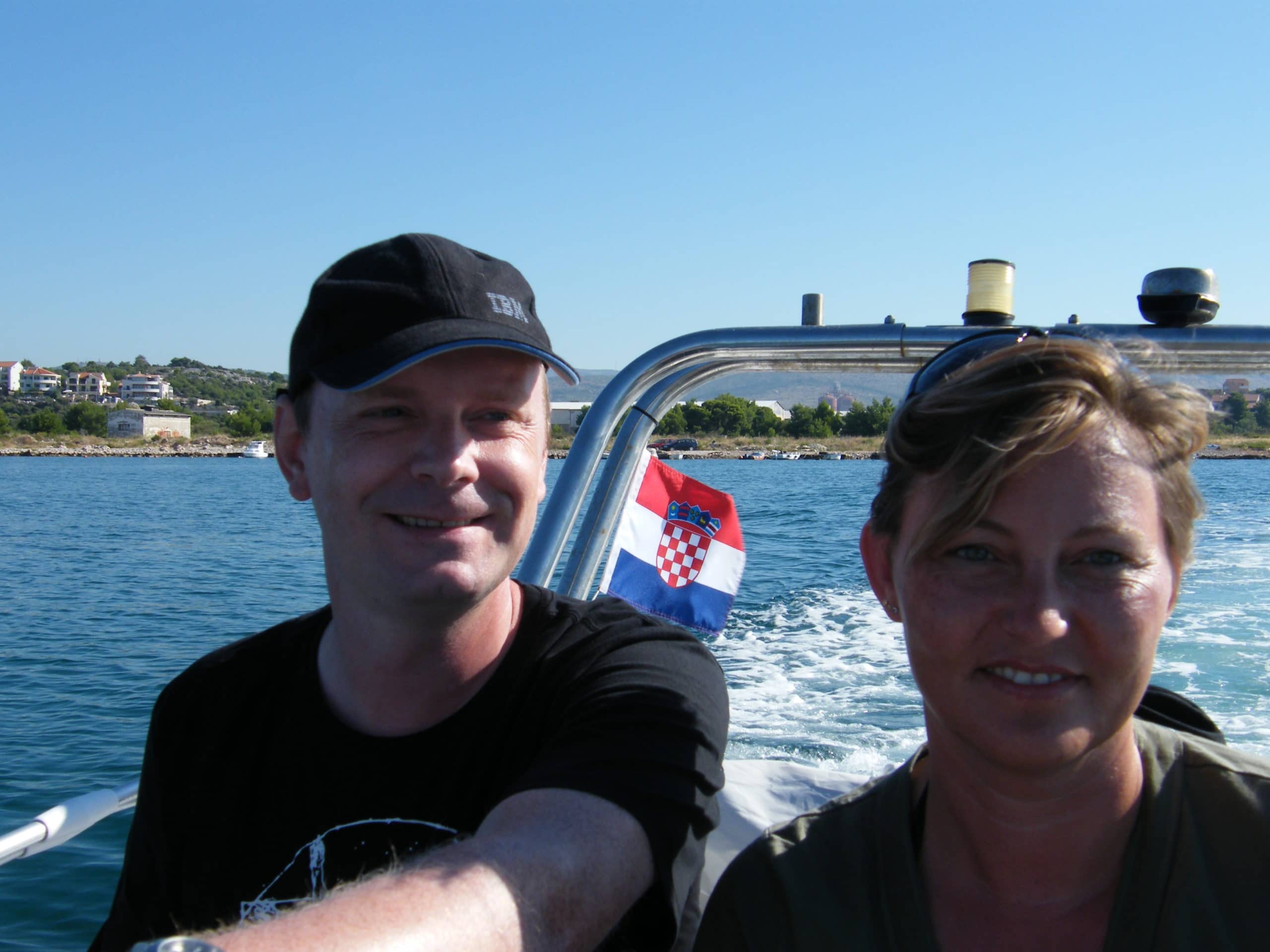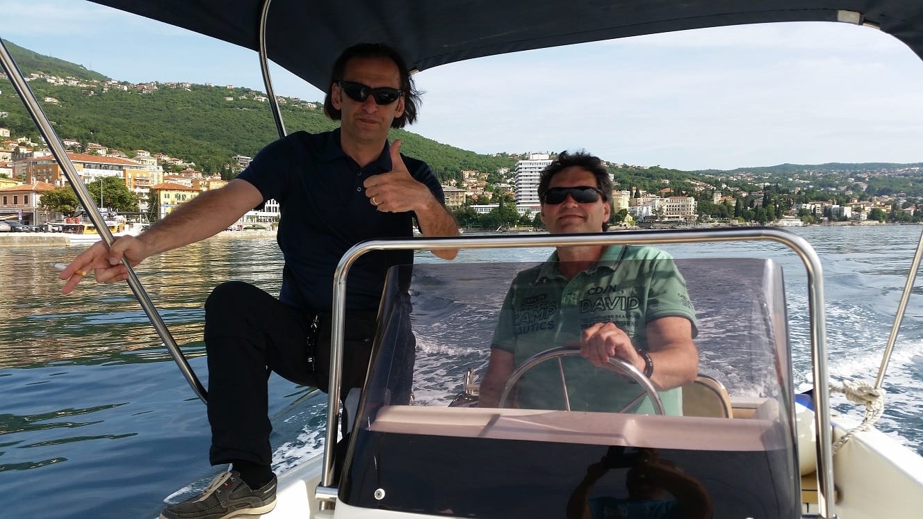 Ein Freund und ich hatte letztes Jahr die Idee das Kroatische Küstenpatent zu machen. Wir buchten den Kurs über AC Nautik. Es lief alles perfekt ab, auch Dank des Manuskriptes der Agentur Pointner. Heuer absolvierten wir mit AC Nautik bereits ein Praxistraining in Opatija was eine super Sache war. Danach waren wir bereits auf eigene Faust in der Region Murter – Pasman mit dem Motorboot unterwegs. Das Bild zeigt mich mit dem Praxistrainer von AC Nautik in Opatija.